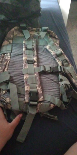 The backpack is designed to comfortably hold up to 50 lbs, making it ideal for extended outdoor adventures.